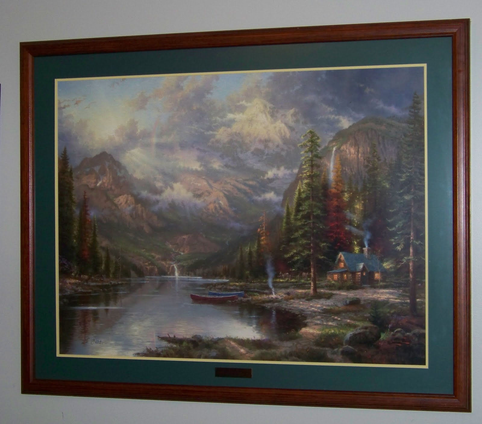 Ever had one of those weeks when everything seemed to be going wrong? A few weeks ago, I had such a week. I didn’t even want to answer the phone because almost every phone call was laden with bad news. Then it came – a message of light via facebook. A friend of Michael’s (my late husband) and I had been corresponding via facebook for some time. I was astounded when I opened the message from him to find that God had laid in on his heart to give me a gift in memory of Michael. This wasn’t just any gift; it was an extraordinary gift, one that humbled me to the core. He wanted to give me a Thomas Kinkade painting that reminded him of Michael and me. What? Why would he give me such an incredible gift? I’d done nothing to merit such a thing. After repeatedly asking if he was serious and finding out that he was indeed, I found myself on my knees before the Father. I prayed asking God why he would tell this man to give me such an extravagant gift. God’s answer to me made me come undone. He spoke to my spirit saying, “Because I love you with an extravagant love.” Wow! The God of the universe not only loves us, but He loves us with an extravagant love! This painting is a picture of that love in my own life and he used a man I’d never met to show me His great love. Alas, I met my facebook friend and had dinner with him and his girlfriend. It was such a blessing to meet them and I’m still overwhelmed by his generosity. I now have a beautiful portrait of God’s extravagant love hanging in my living room. Matt, I know that this painting will remind me of the Light in times of darkness. I can never thank you enough!!!