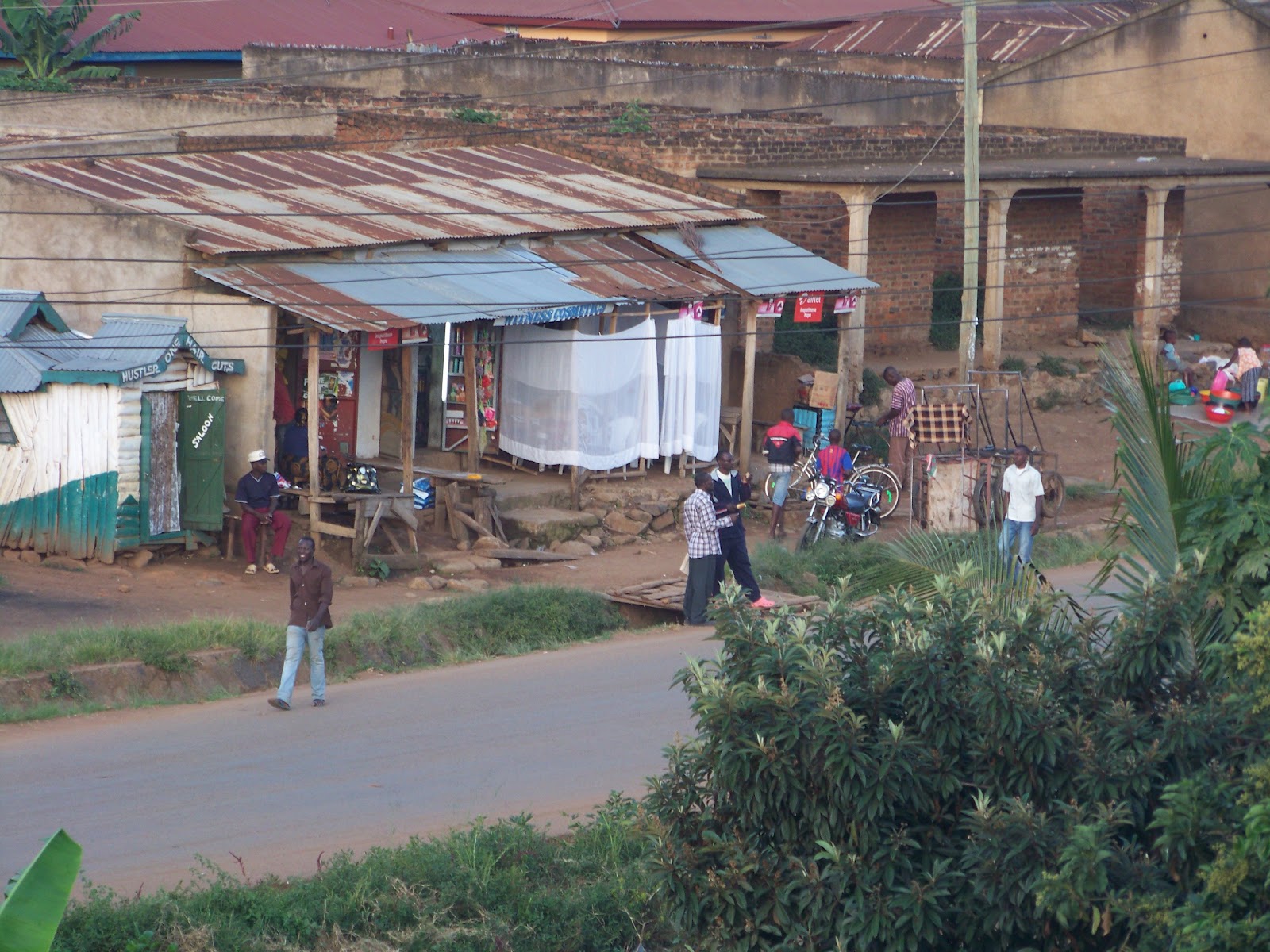 dirt streets. I see piki pikis (motorbikes) carrying passengers to their